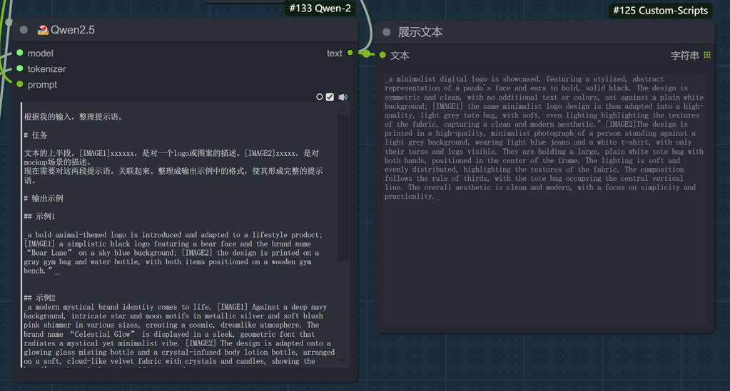 需要对logo图案和mockup参考进行反推,然后使用语言大模型对提示语进行处理,最后的提示词符合In-Context LoRA (IC-LoRA) 提示语规则。
