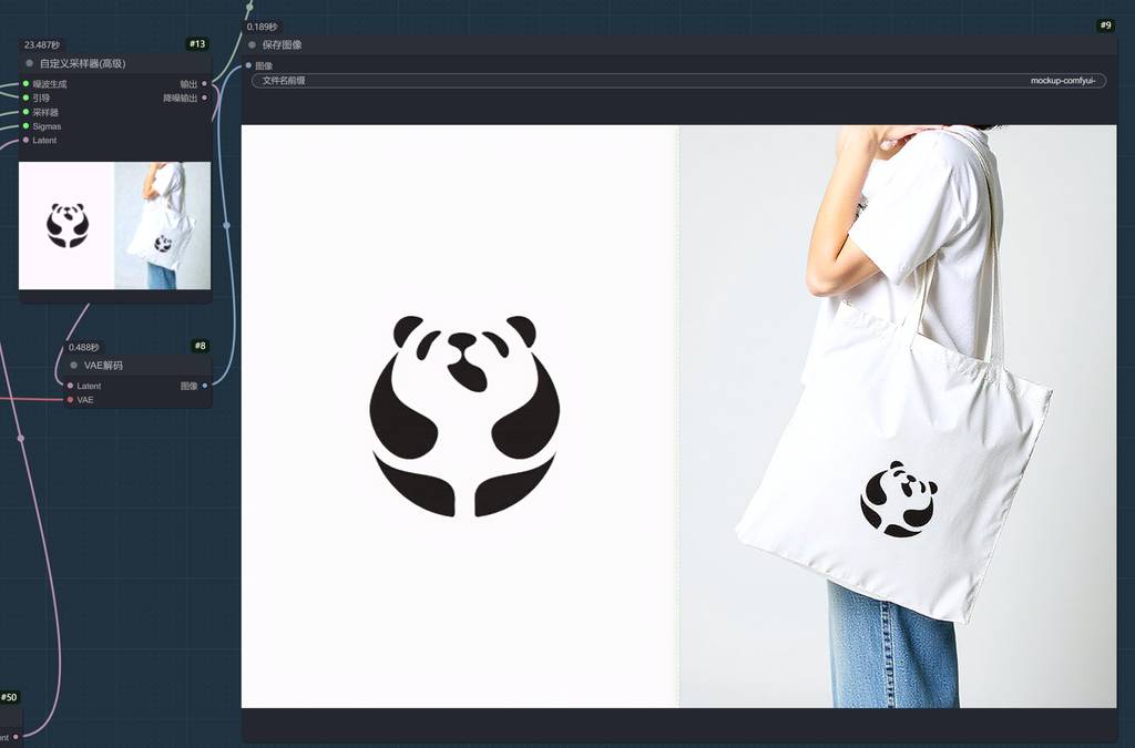 看看利用此技术,搭建的ComfyUI工作流,生成的logo mockup图。
