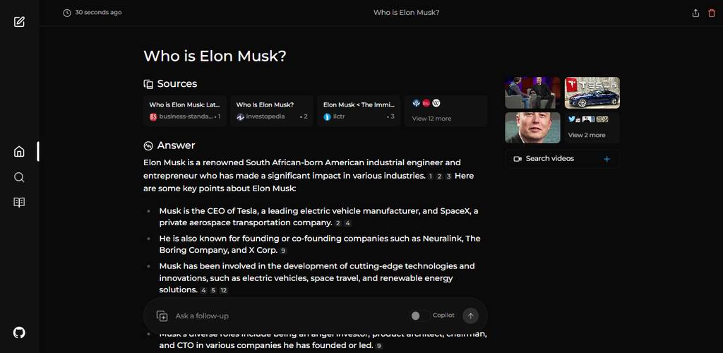 跟秘塔搜索类似,但对中文支持不是很好,支持图片的搜索。但是最近他们关闭了VPN访问,所以国内用户很难访问。所以这里就不再介绍了。