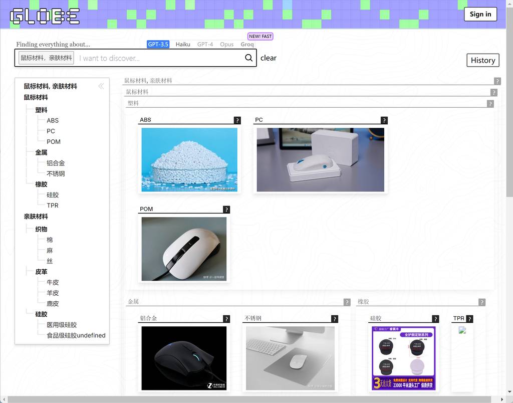 这个检索工具,可以进一步加深对材料的研究和认知,搜索结果带有大量的图片,和更具有结构化的目录。