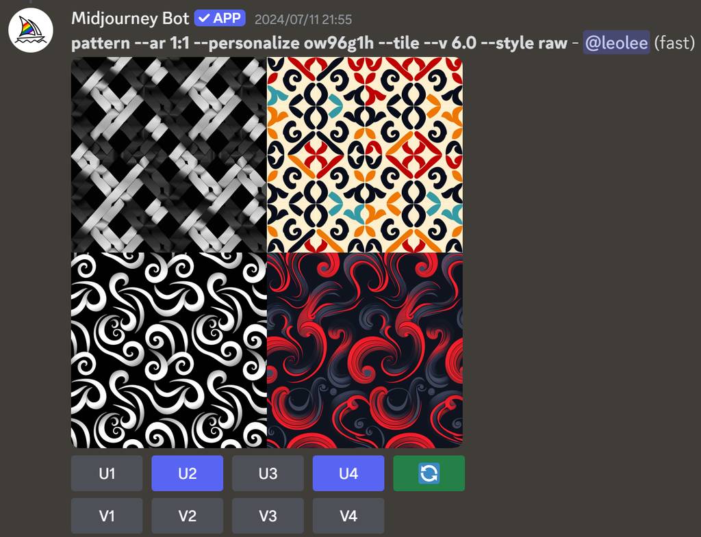 pattern --ar 1:1 --personalize ow96g1h --tile --v 6.0 --style raw
