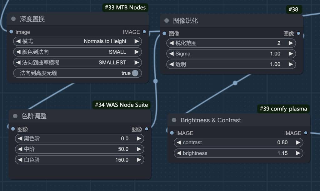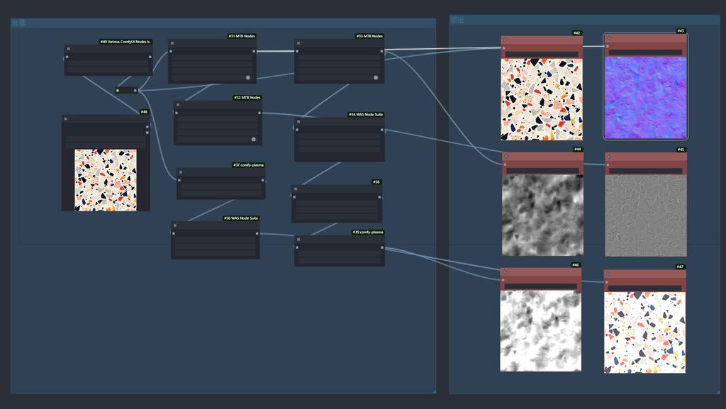 其实这个步骤,是我之前的PBR工作流的一部分,这里也顺带提一下。 目标是根据输入的无缝图像,生成标准PBR贴图,由于之前已经介绍过了,我这里直接贴一下工作流截图。