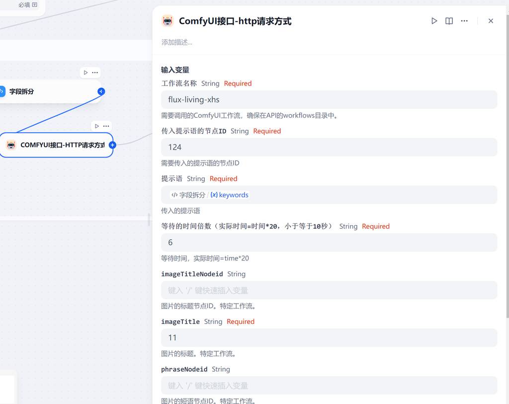这样就可以指定ComfyUI的节点ID,传入指定参数。