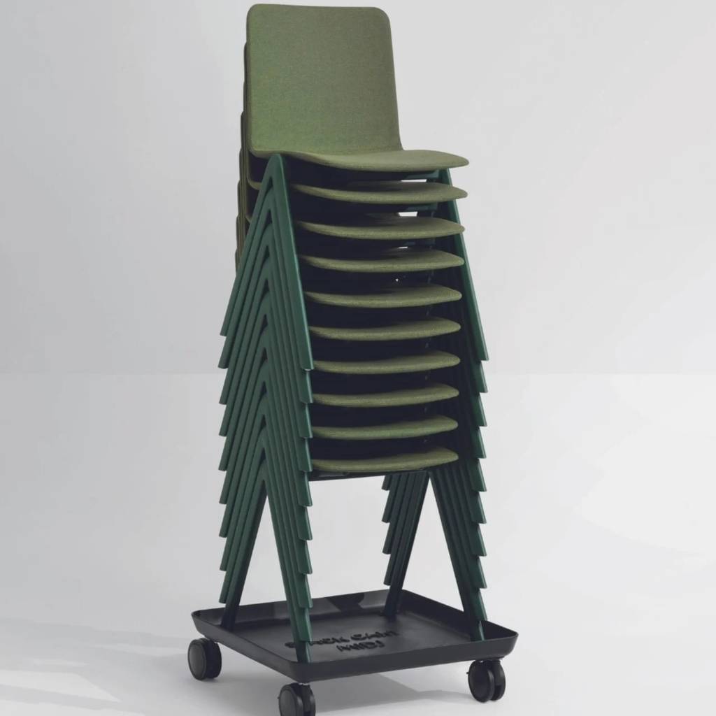 这款创新的堆叠椅具有指南针式的四腿底座,可以将椅子堆叠到几乎无限高。当然,你需要考虑垂直空间和安全可达的高度。