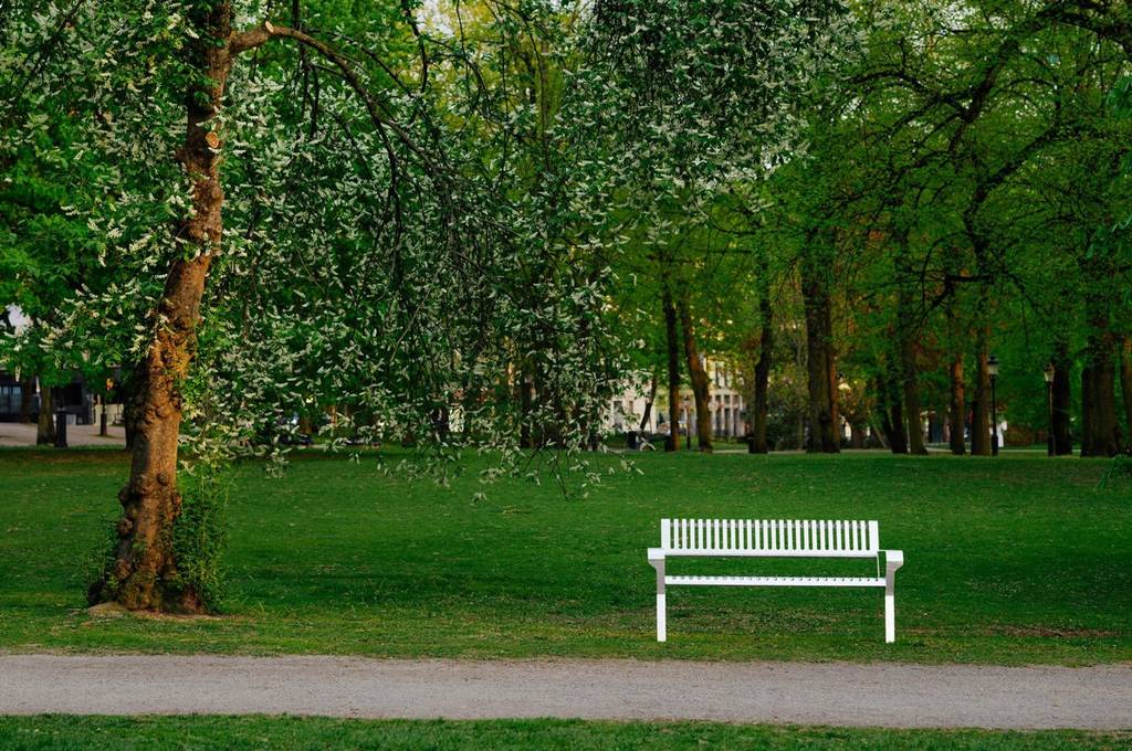 街头家具品牌Vestre与设计师Emma Olbers共同创作的Tellus长凳,采用无化石钢铁制成,制造过程中不产生碳排放。