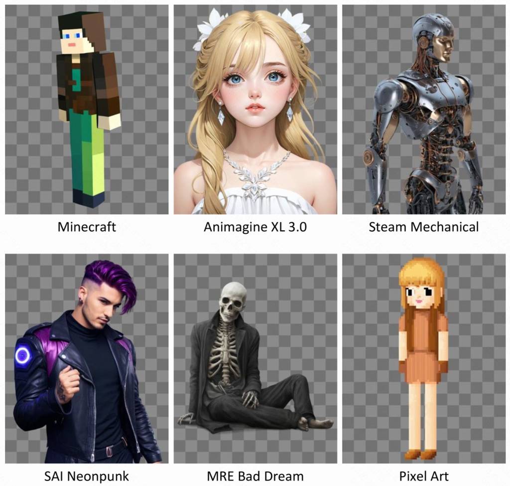 模型转换 凭借这种方法,任何潜在扩散模型都可以轻松转换为透明图像生成器,只需对潜在空间进行微调。