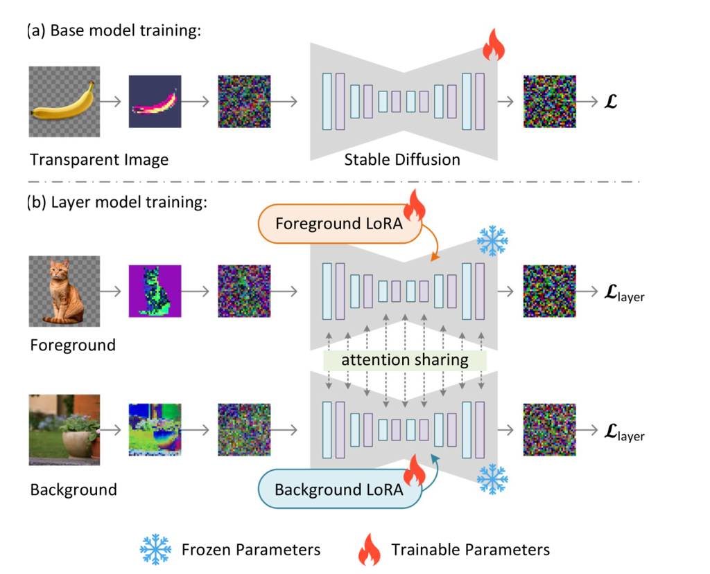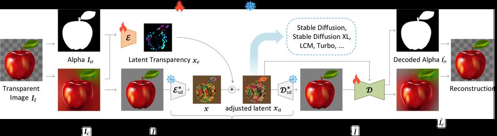 潜在透明度 该技术的核心是“潜在透明度”,它将透明度无缝整合到潜在扩散模型的潜在结构中。这种巧妙的方法几乎不影响模型的潜在分布,从而保留了其卓越的图像生成能力。