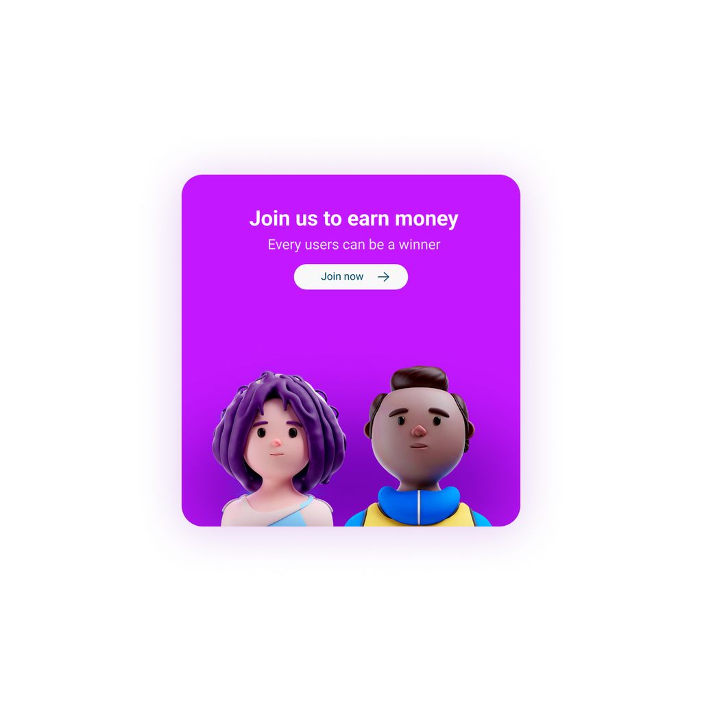 主题:一个“加入我们”的banner,简约设计为主,一男一女的3D角色。大致的布局如下: