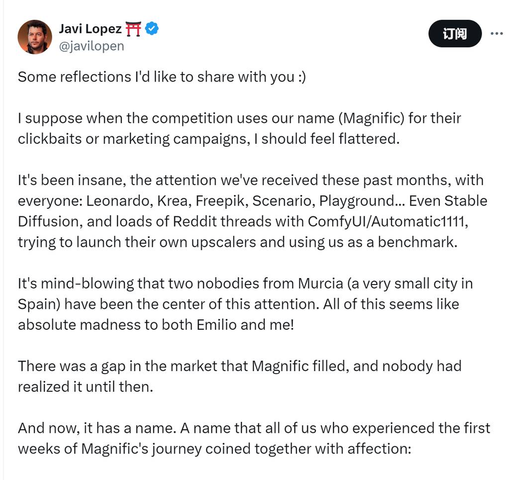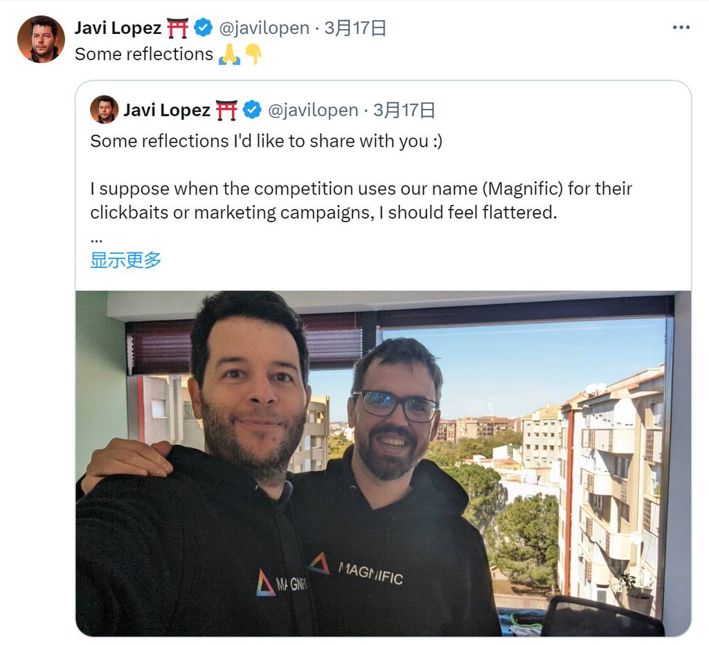 紧跟着,Maginific的创始人就发了一个贴,说有些竞争对手借着Magnific的名字,进行点击诱惑。