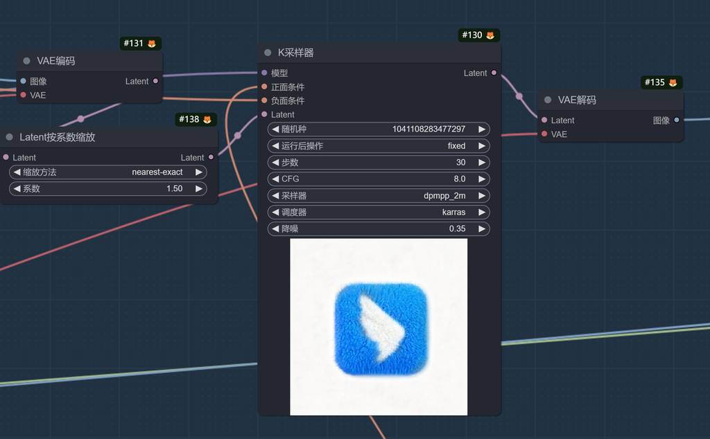 经过颜色校正的图片,进入第二次采样,同时也对图像在laten空间进行放大处理。降噪这里调低点,以免变形太多。