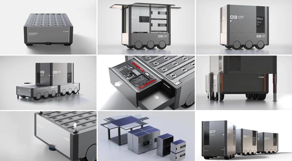 UPOP(U POD)的设计背景,源于现代汽车集团(Hyundai Motors Company)在“自动驾驶无人移动平台”基础上,对下一代物流移动集成控制模块的研发需求。Citrus design 团队围绕这一需求,构建了基于自动驾驶的未来物流场景,并提供了“产品+服务”一体化的全案设计——涵盖车辆设计、集装箱设计、枢纽站点设计,以及配套的可视化视频与应用程序(App)。