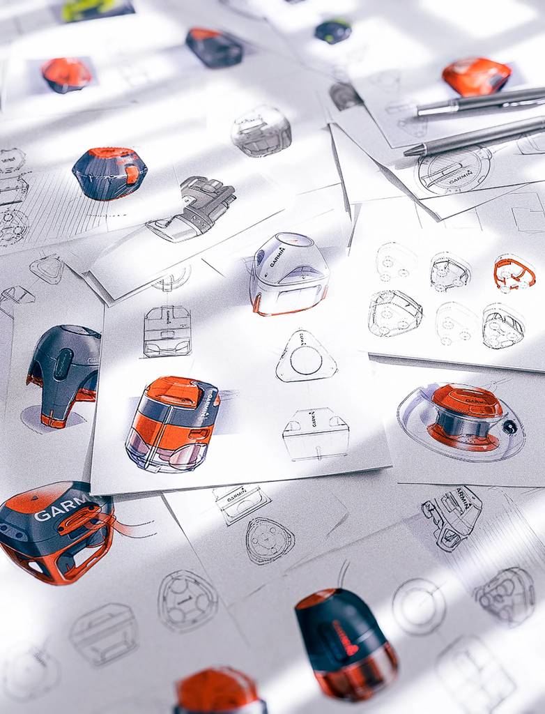 视觉设计语言:视觉上遵循佳明的产品设计风格和早期设计方向。通过采访一些潜水员并与当地潜水店的教练交谈,我们能够了解用户群体和使用场景。用户的共同性格特征也是一个主要的研究目标,以便为这个全新的市场定义一款消费产品。