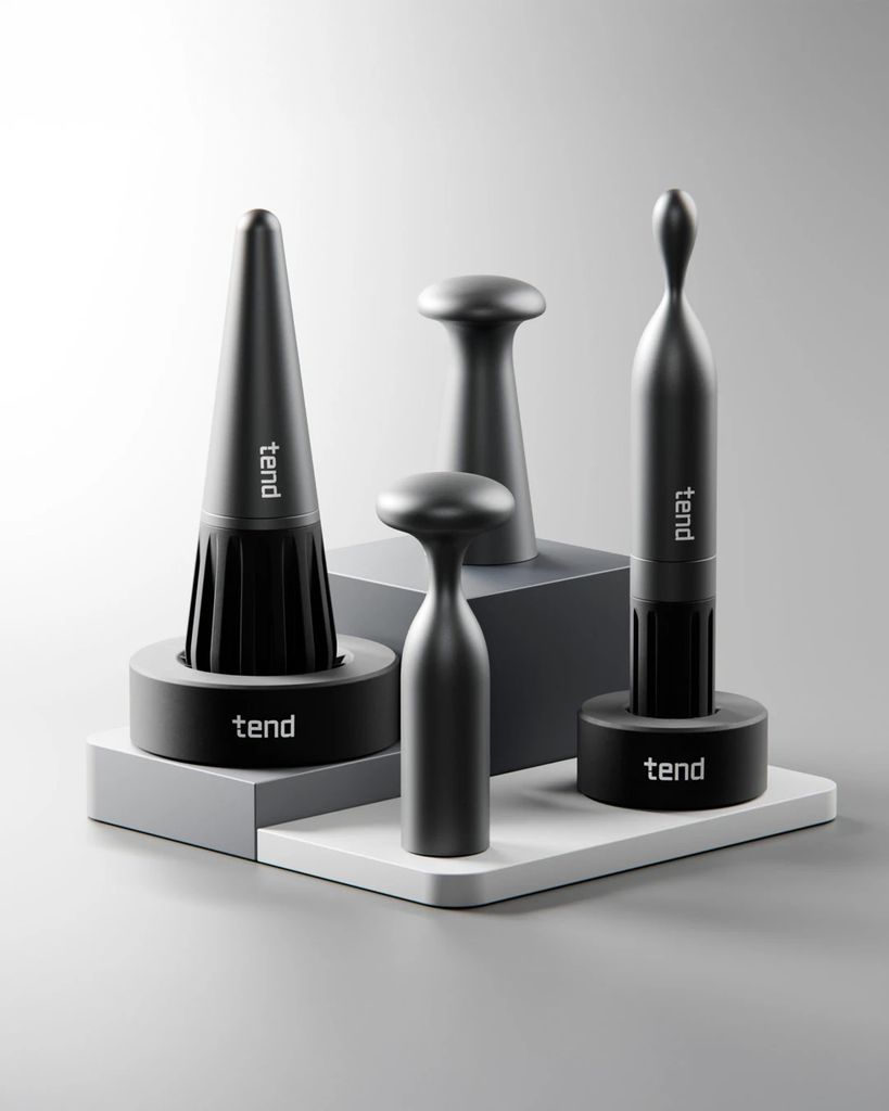 Tend Health Device 是一款便携式健康设备,利用高频聚焦振动来缓解疼痛并加速康复。我们的使命是将其先进的设计和工程转化为清晰且富有启发性的视觉语言。