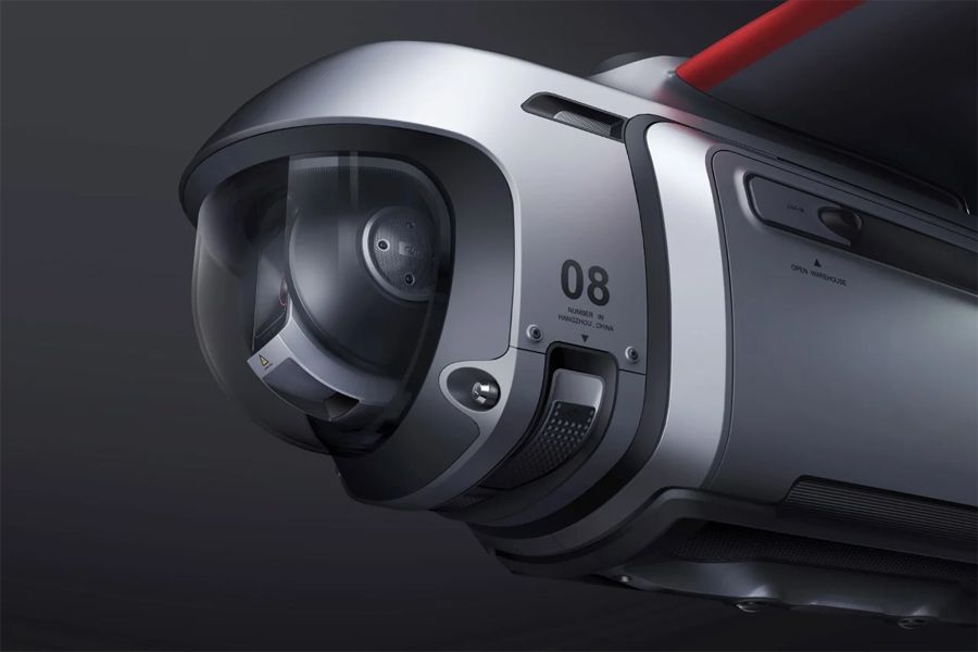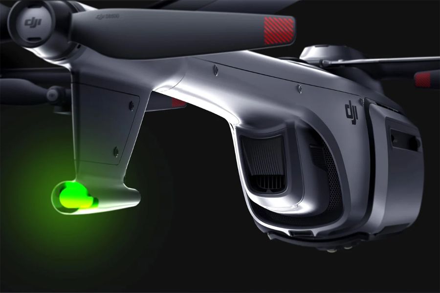 Meng的设计分解成了一些非常酷的特点。首先,那些翅膀和侧边螺旋桨并非只是装饰;它们赋予了DJI Express长途飞行的能力。然后是前端的相机,它坐在一个云台上,可以让相机移动,并给操作者提供飞行员的视角。