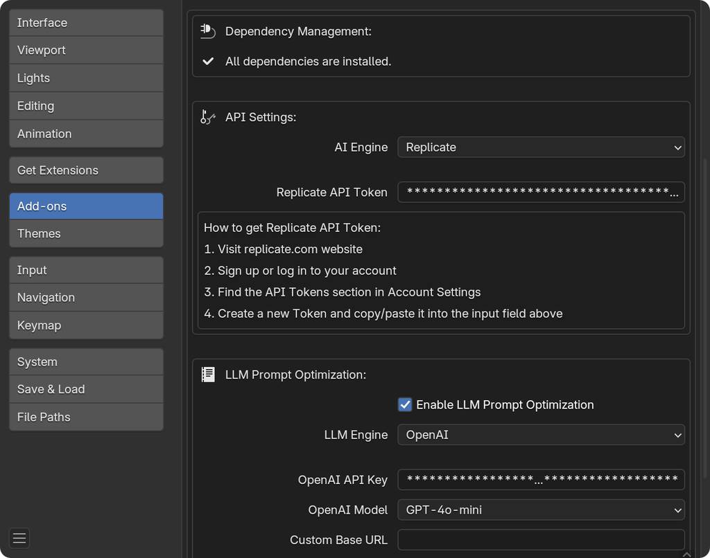 目前争取在 Blender market 上架,但是审核人员说不允许 AI 第三方 API 的接入🥱。