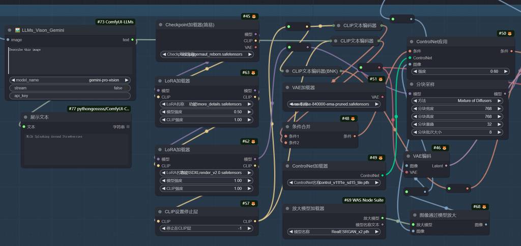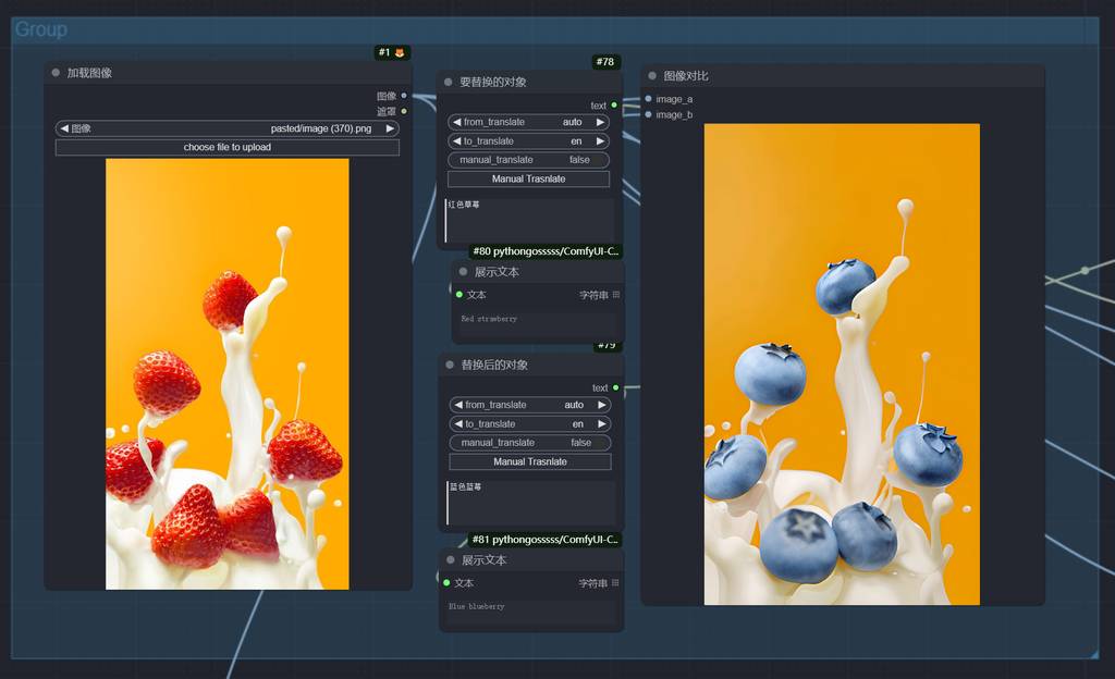 这个组定义了输入的图像,同时加入图像对比,便于观察效果。输入节点,加入了翻译,使用中文输入即可。
