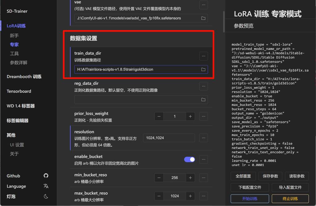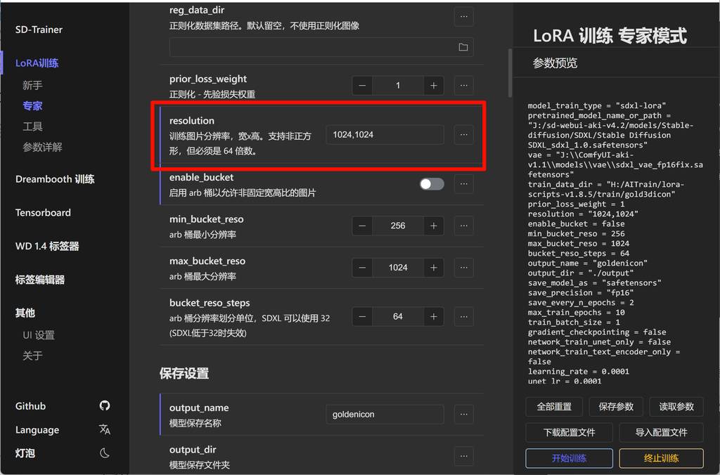 根据自己的训练集,这里也提示了规范。我的素材是1024x1024