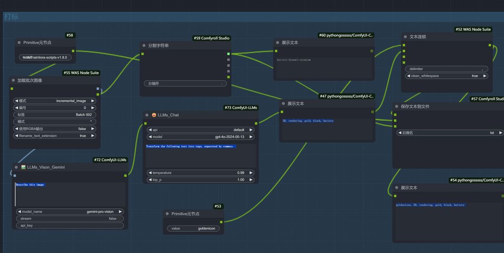 我是结合了多个工具的,其中主要是打标处理。如果使用WD 1.4 标签器,反推的tag有时候会不太好,所以我用ComfyUI搭了个工作流,利用在线的语言大模型进行打标,准确性更高。