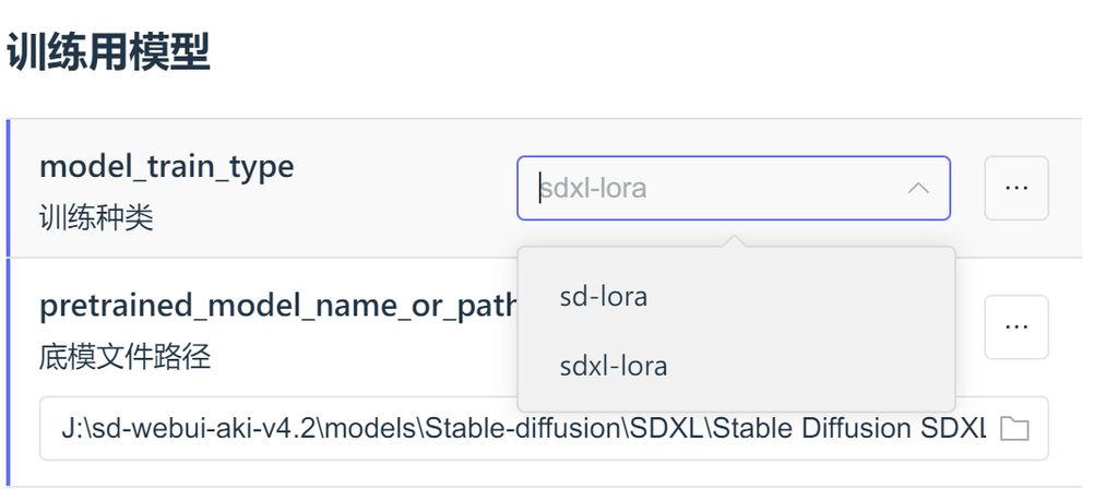 选择一个底模,我这里训练SDXL LoRA,所以要选择一个SDXL的模型,我直接使用了原生的了。