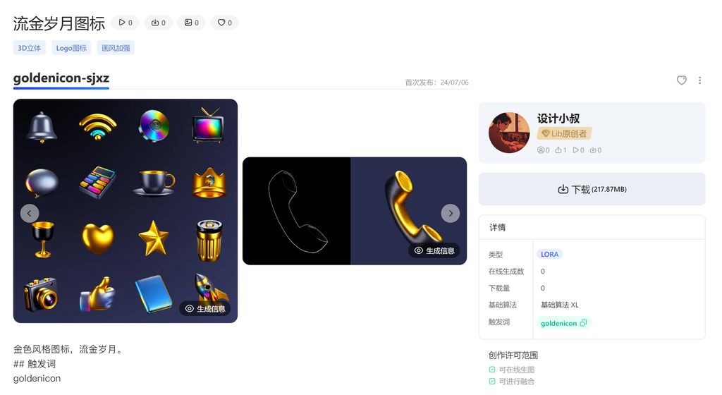 从输出的xy图标中,我们可以看到,权重在0.9-1.0之间,名称为goldenicon的LoRA模型拟合程度符合预期(图片右下角位置),可以作为成果去使用了。