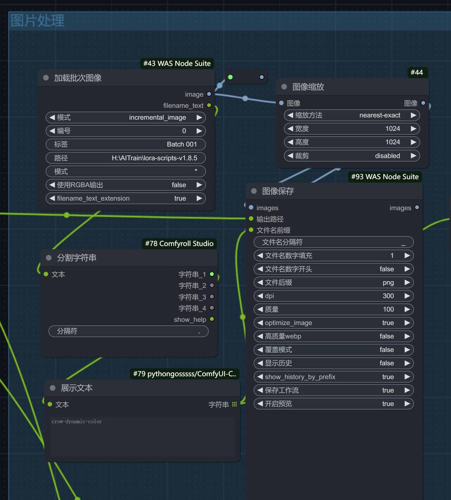 图片处理模块,我也是使用ComfyUI的工作流,这次比较简单,只是缩放了一下尺寸,如果需要检测人脸,然后裁剪,也是可以搭建工作流方式实现的。
