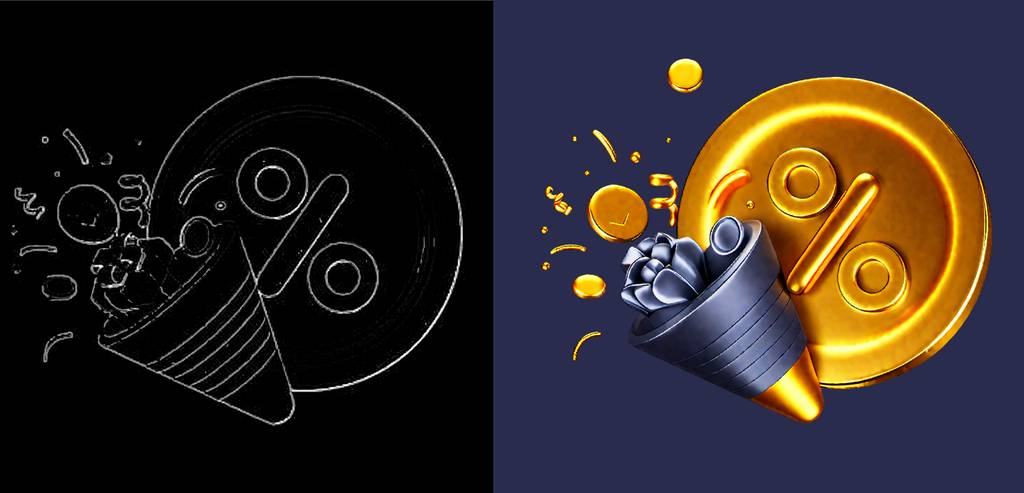 其实就是通过Controlnet控制,按需求出图。其实大部分场景应该就是这样使用,通过绘制图标线稿,生成相应的风格图标。