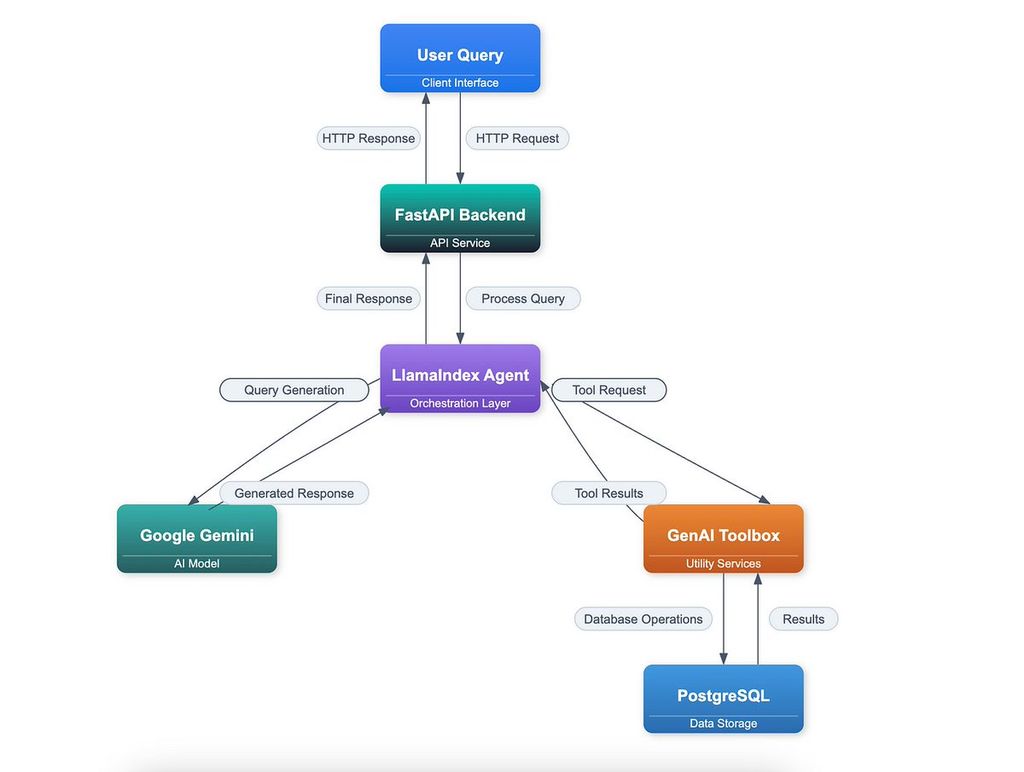 GenAI Toolbox扮演了“中心化控制平面”的角色,连接起应用的编排框架与数据库:
