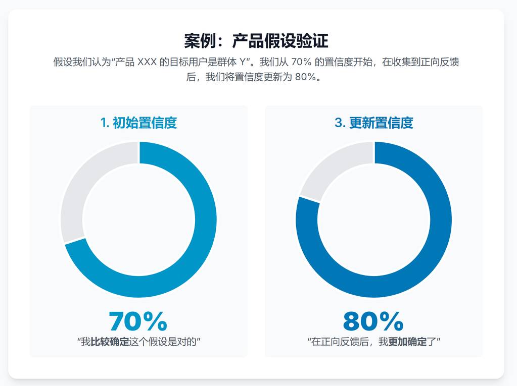 采纳贝叶斯思维所需的最关键的心智转变,是从“非黑即白”的二元对立思维模式,转向用“置信度”来衡量信念的概率思维模式 5。产品设计或创业者的世界不再由“我的想法是正确的”和“我的想法是错误的”构成,而是由“根据现有证据,我对我的想法成功的置信度是X%”构成。