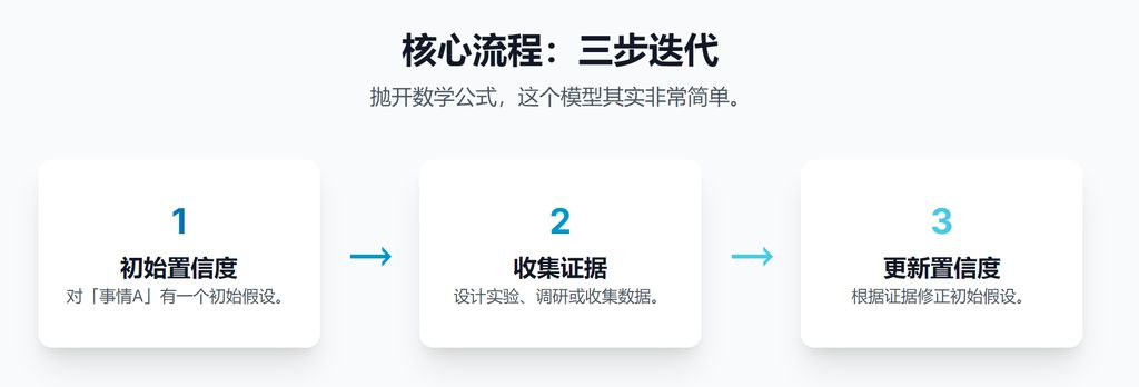 贝叶斯思维提供了一个结构化的方法,用于在获取新信息时系统地更新我们的信念。这个过程可以被分解为三个核心组成部分,共同构成一个动态的学习引擎。