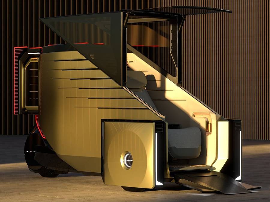 它专为数字游民和豪华出行需求者设计,配备全景车窗、双天窗,前排座椅可旋转至朝向后方,停车时能形成社交聚会空间。车内更像是私人会客厅而非交通工具,光线充足,座椅可灵活调整——从独立船长椅变身可躺卧的睡眠模式。未来感轭式方向盘后方的曲面数字显示屏,让驾驶者(或更准确地说,乘客)能无缝连接车辆各项系统,同时保持座舱整洁有序。