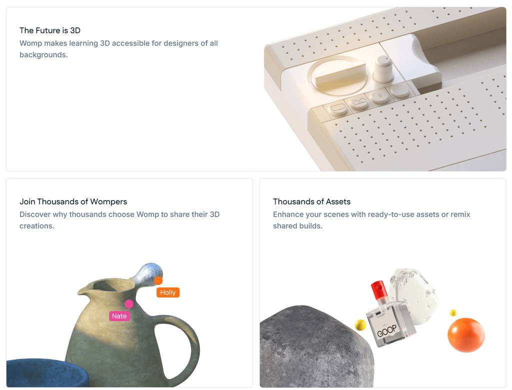 - Womp lets you create 3D models in your web browser - CG Channel, accessed October 5, 2025, https://www.cgchannel.com/2022/11/womp-lets-you-create-3d-models-in-your-web-browser/