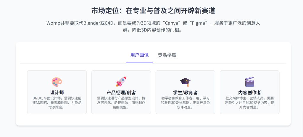 4.3 市场两端定位:Womp vs. Tinkercad 与 Blender