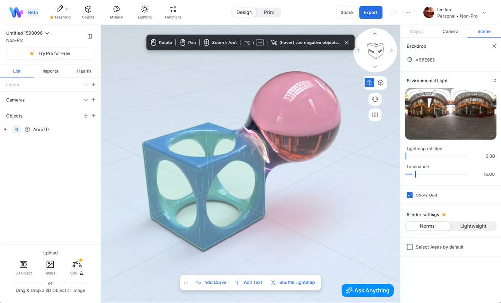 Womp的用户旅程被精心设计,以提供即时满足感为首要目标。新用户可以免费注册,无需下载任何软件,直接在浏览器(早期版本主要支持Chrome)中启动应用,并通过简单明了的教程,在短短几分钟内完成自己的第一个3D模型 5。