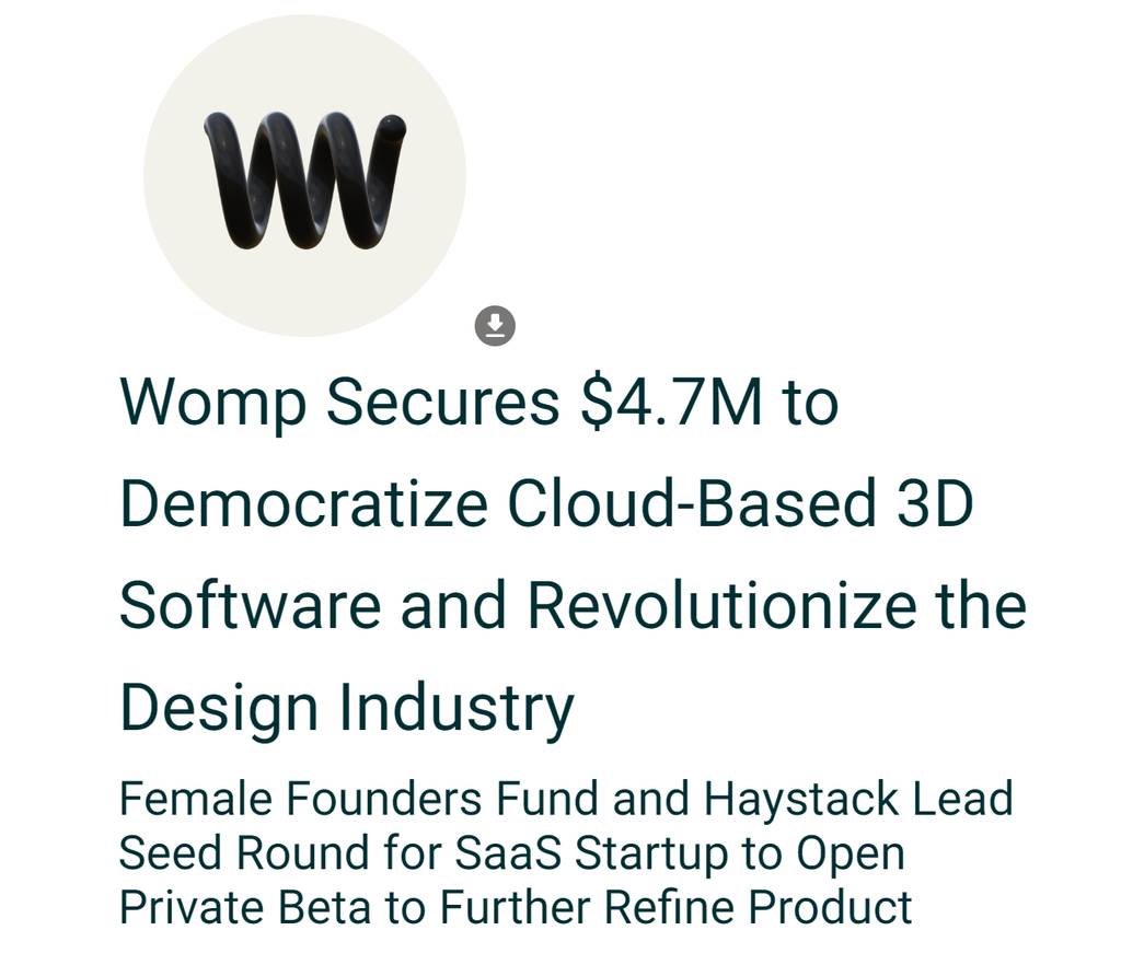 - Womp Secures $4.7M to Democratize Cloud-Based 3D Software, accessed October 5, 2025, https://www.globenewswire.com/news-release/2022/04/27/2430365/0/en/Womp-Secures-4-7M-to-Democratize-Cloud-Based-3D-Software-and-Revolutionize-the-Design-Industry.html