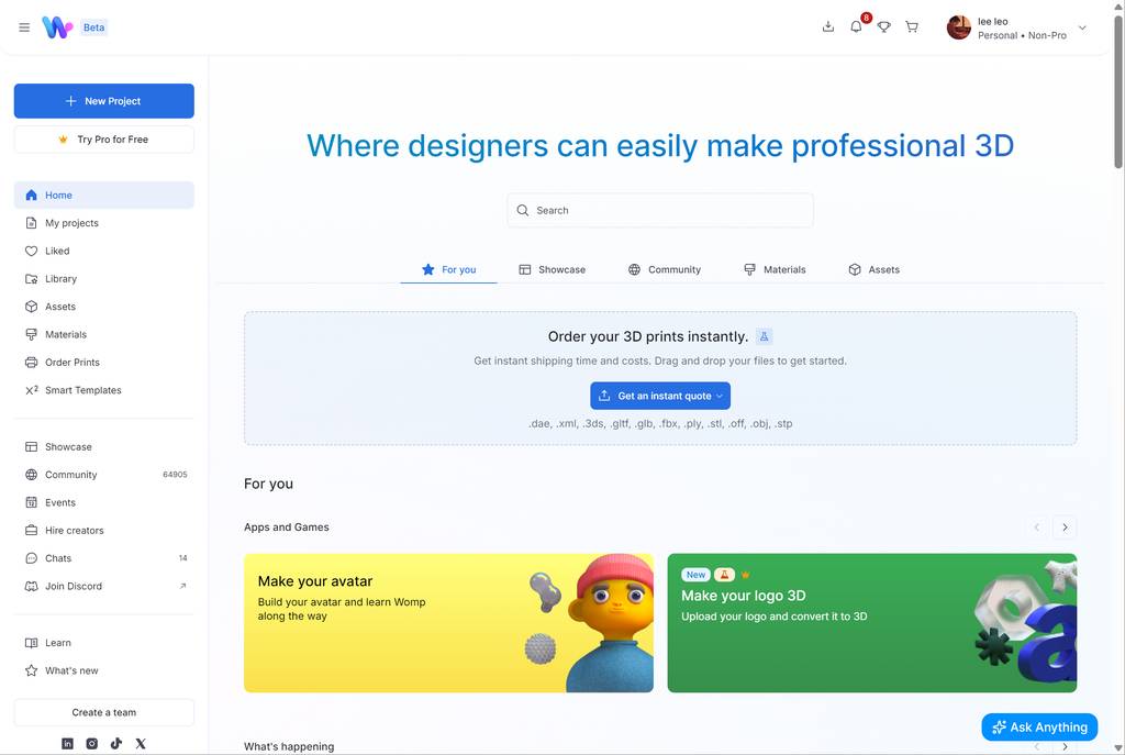 Womp的商业模式采用了成熟的SaaS(软件即服务)免费增值模型,通过提供功能强大的免费版本来吸引海量用户,再通过高级功能、专业素材库和团队协作工具来驱动付费转化。此外,其内置的3D打印服务不仅是独立的收入来源,更是一个巧妙的增长飞轮,它将数字创作与实体产出无缝连接,极大地增强了用户粘性,并与其核心SDF技术的优势(易于生成可打印的实体模型)形成了完美的战略协同。