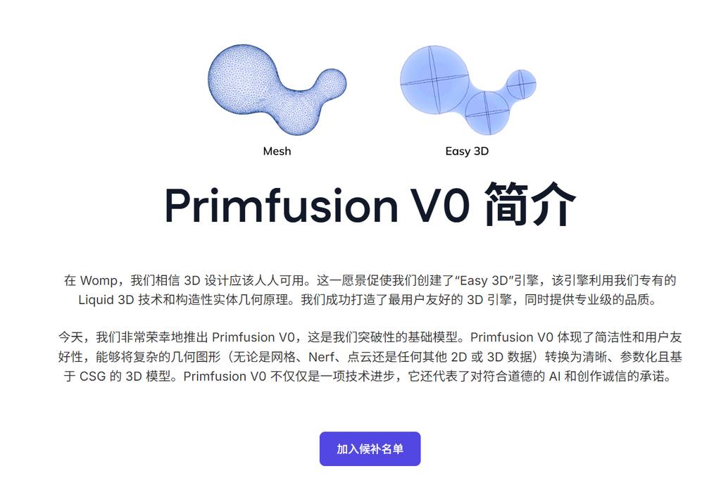 面对席卷整个科技行业的AI浪潮,Womp正在通过推出Primfusion V0模型,战略性地进入人工智能领域。Primfusion是一个基础模型,其设计目标是将复杂的几何体(如网格、点云等)转换为由基础形状构成的、简洁的、基于CSG的参数化模型 21。