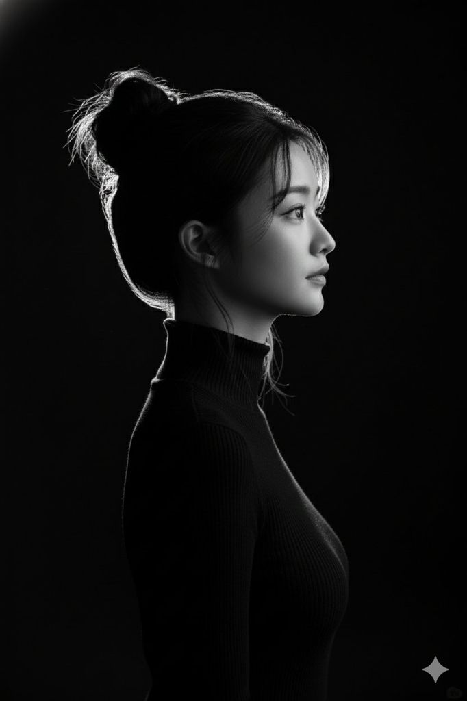 一、高对比黑白侧影肖像 - Minimalist Sculptural Portrait with Rim Light