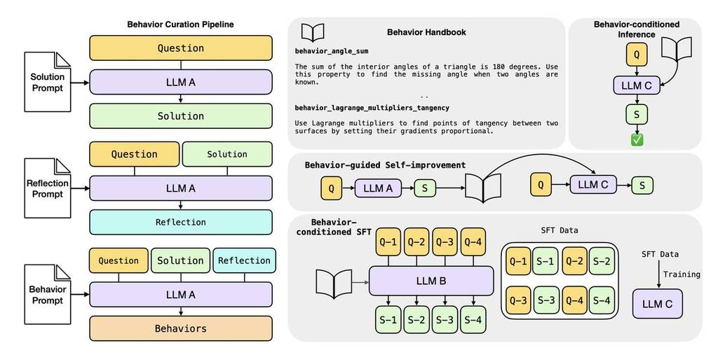 Meta团队近期提出的“行为(Behaviors)”解决方案,为突破这一瓶颈提供了新思路。不同于检索增强生成(RAG)系统存储事实性知识的模式,“行为”聚焦于提取模型自身推理轨迹中的可复用流程,将“容斥原理推理(behavior_inclusion_exclusion)”这类基础方法转化为“认知工具”,让模型无需反复重新推导,直接调用即可。