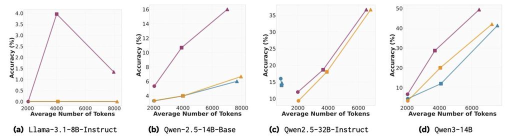 “行为”方案的价值不止于效率。当用“行为条件推理轨迹”对模型进行微调后,即便是参数规模较小的模型,也能在推理能力上实现“质的飞跃”。原因在于“行为”为模型提供了“认知脚手架”——通过复用经过验证的基础流程,小模型能将更多计算资源投入到复杂问题的逻辑整合上,而非基础方法的重复推导,最终具备原本只有大模型才有的推理精度。