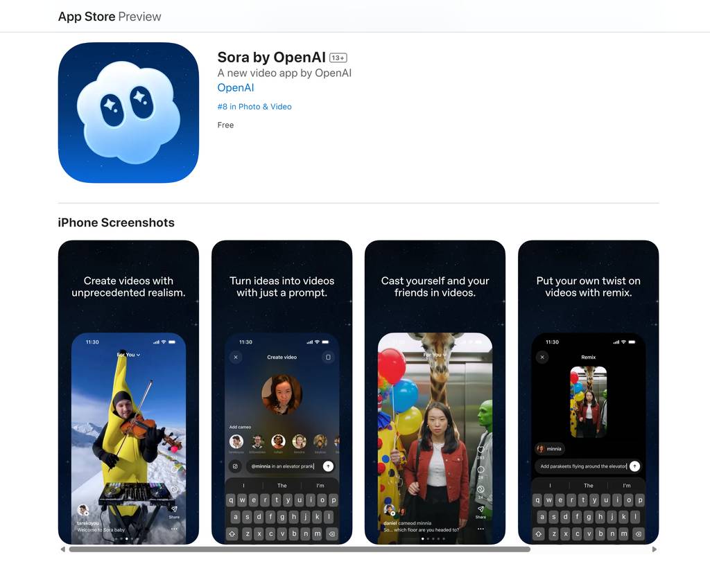 此前该应用已在OpenAI内部测试,员工反馈“因这一功能结识了更多同事”。OpenAI认为,围绕“客串”功能构建的社交应用,是体验Sora 2魔力的最佳方式——它重新定义了人与人的沟通形式:从文字消息、表情包、语音笔记,进化到“沉浸式共现”。
