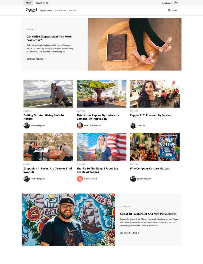 在Zappos的“关于我们”部分中,对公司文化的真实描绘使其显得真实而透明,而不是企业化和陈腐。