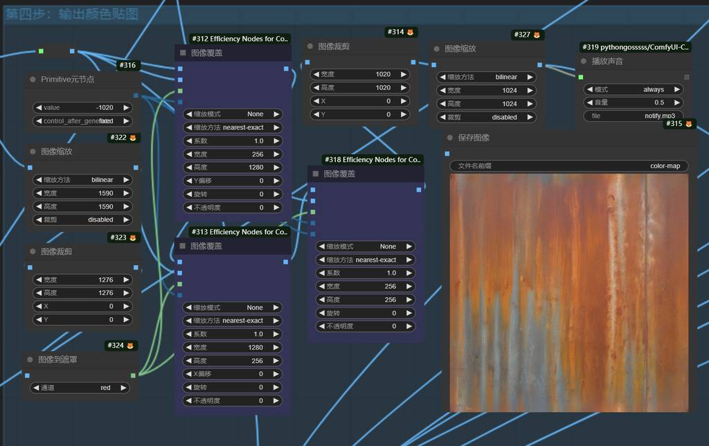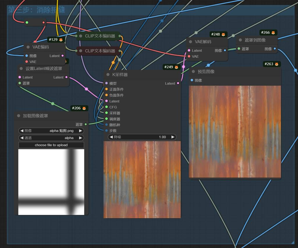 也就是说,这个工作流的重点在于利用AI技术实现无缝贴图的自动化生成,从而大大提高PBR材质制作的效率。通过AI重绘接缝,避免了手动处理带来的繁琐工序。