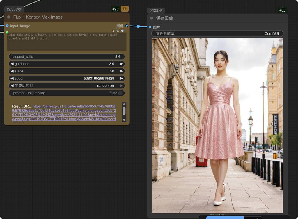 我们知道,ComfyUI 最大的优势是工作流,那么经过 Kontext 模型出来的图,还是不够高清的,那么可以接上我之前的放大工作流进行高清化。实现真正的商用。