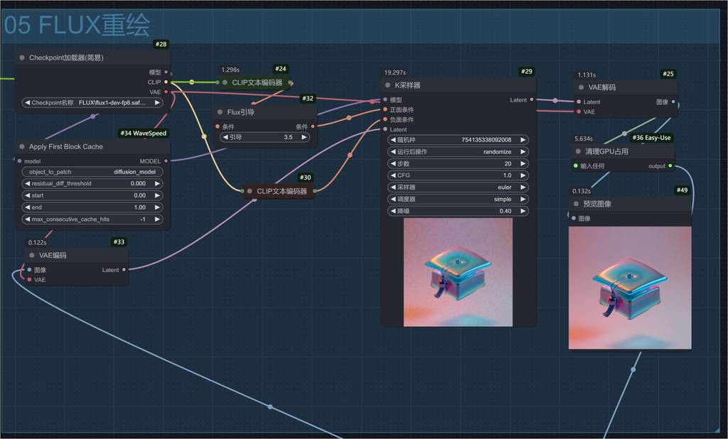 可以看到第一次采样的图片质量并不高,当然,你也可以继续使用 SDXL 模型进行重绘,但是这次我们使用 FLUX。
