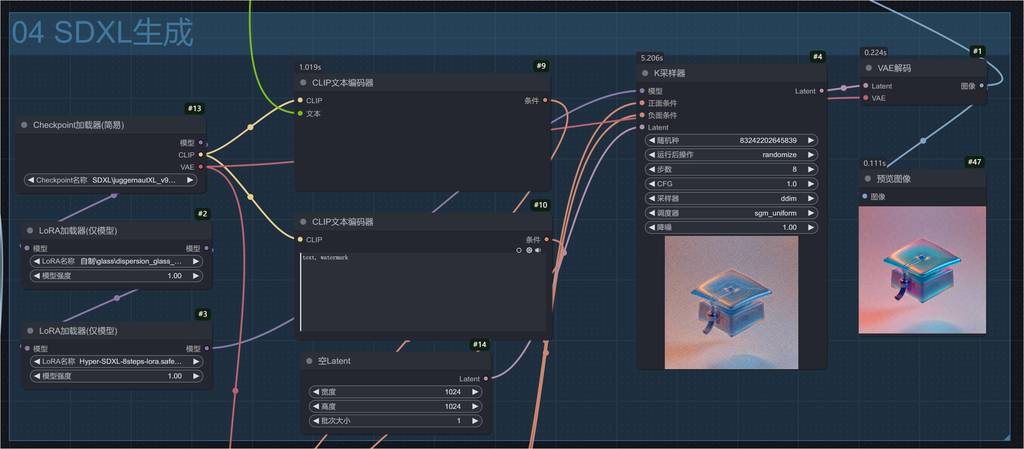 标准的 SDXL+Hyper LoRA+风格 LoRA 出图。
