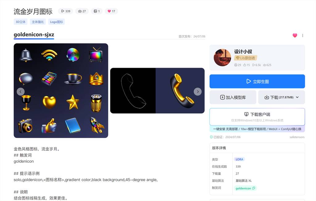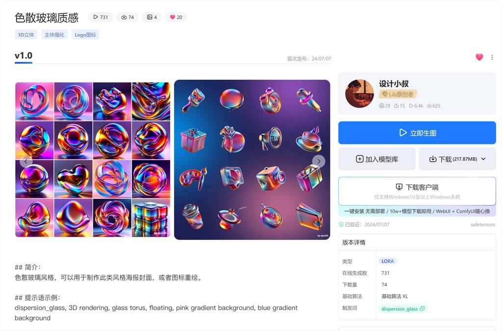 风格 LoRA 大家自行到模型网站下载,我这里使用的是自己训练的黑金风格和色散玻璃风格。