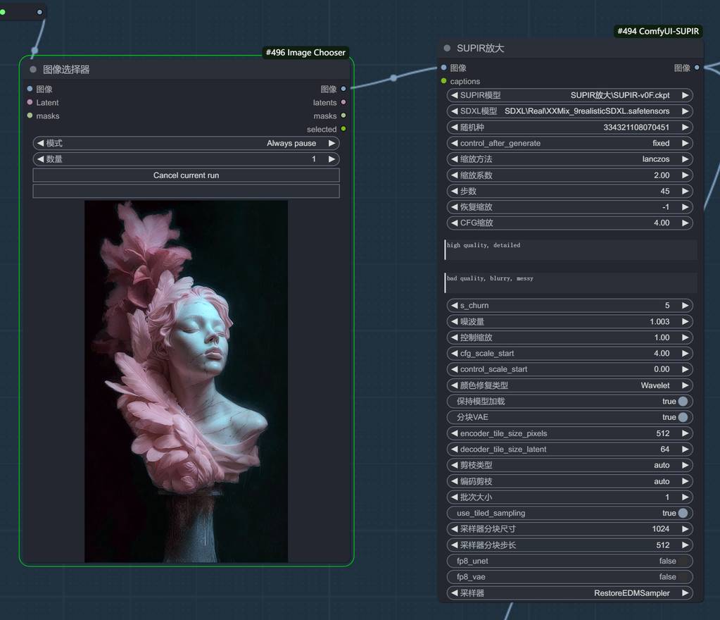 图片的分辨率是1024,如果需要放大,可以使用supir节点进行放大,相对无损。