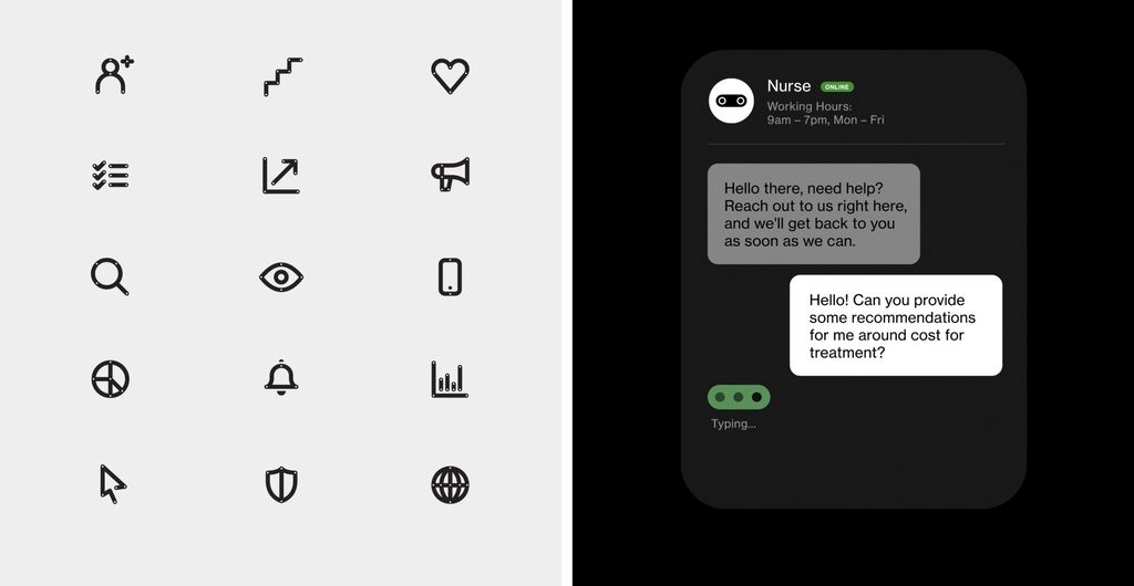 观察这种视觉语言如何精致地扩展到品牌的各个接触点,真是让人赏心悦目。瓶盖上精心设计的圆孔不禁让人联想到品牌的核心象征,而打字指示器、钥匙圈和文件夹的装订边缘,每一处都微妙地融合了这一设计元素。即便是小至图标,也都被赋予了这种独特的美学特征,每一个细节都闪烁着设计的巧思。