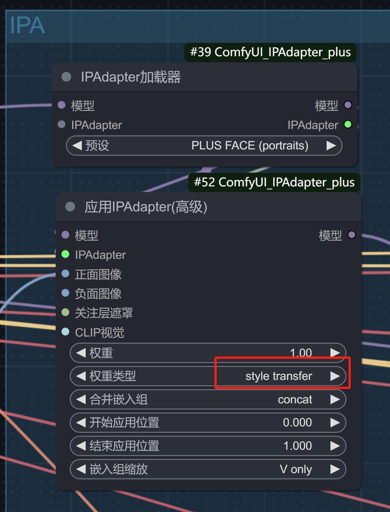 风格迁移,当然用到了鼎鼎大名的IPAdapter,这里要注意,只用到风格迁移即可。不得不说,重构后的IPA,很简洁,很强大。