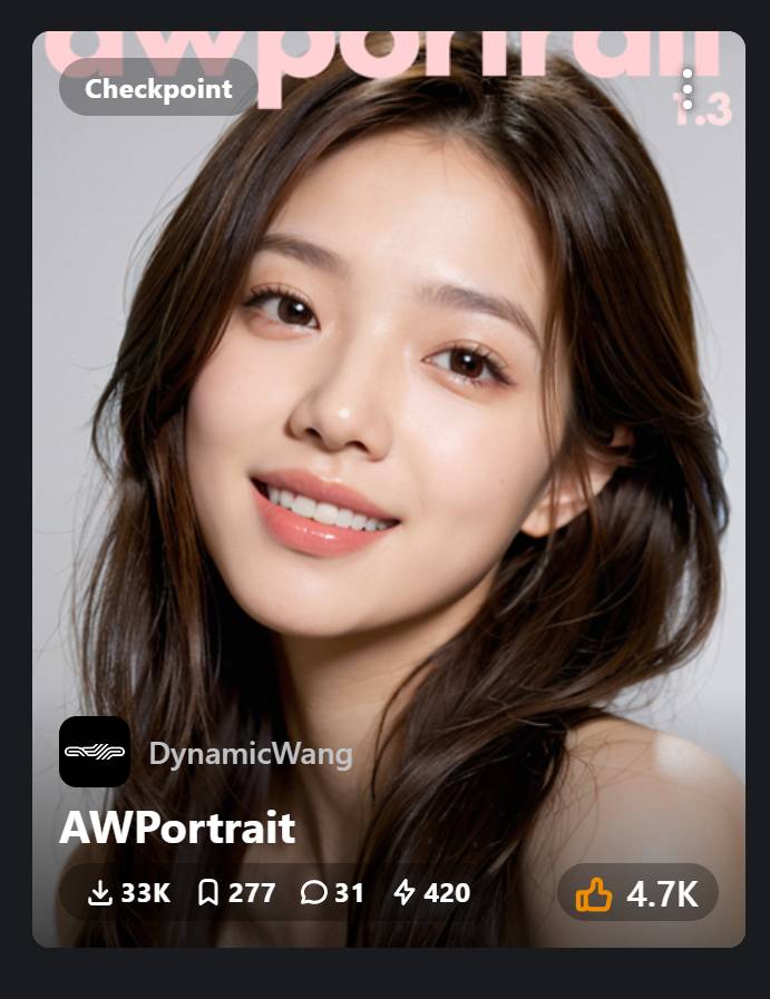 为了获得更好的人物肖像,我用到了DynamicWang大佬训练的AWPortrait模型。